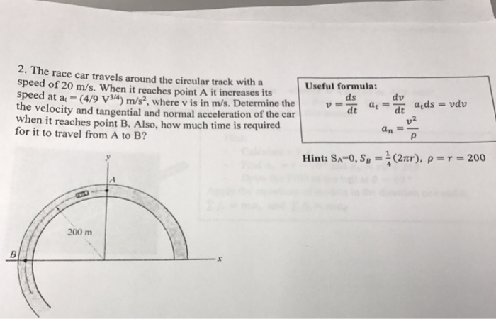 Hw 9 Solutions 12155 The Race Car Travels Around The Circular Track With A Speed Of 16 M S When It Reaches Point A It Increases Its Speed At At 4 Course Hero