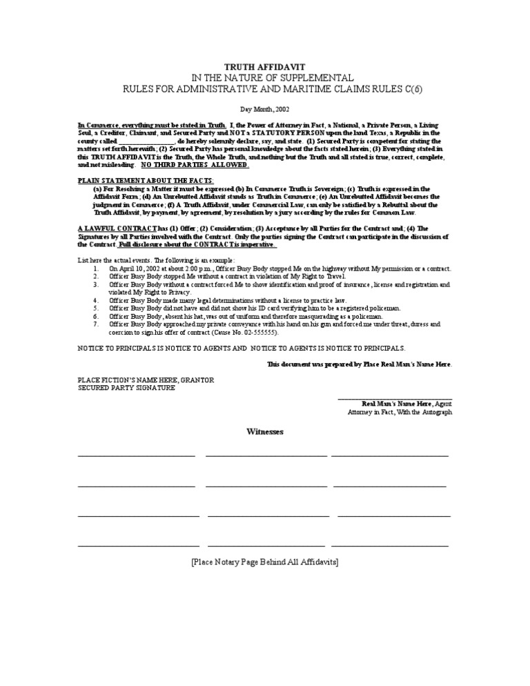 Truth Affidavit Maratime Claim Rules Identity Document Truth